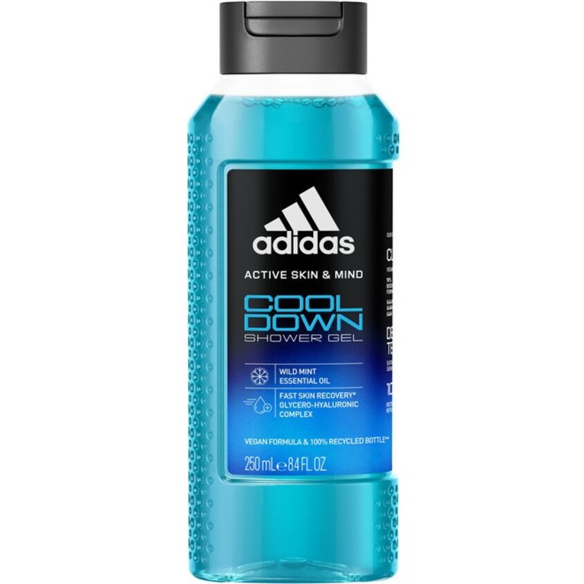 Adidas shower gel active skin & mind cool down refreshes your senses post activity with cooling menthol & wild mint essential oil. its glycero-hyaluronic complex provides fast skin moisture recovery after cleansing. the clean & vegan formula is suited to even the most sensitive skin. 100% recycled bottle (excl. additives, cap & label).